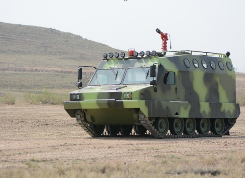 履带式森林消防运兵车是内蒙古一机集团针对森林消防特殊环境研制开发的特种消防运兵车,可轻易撞倒胸径10cm粗的灌木丛林,能够确保在森林行驶过程中车内人员的绝对安全;车辆通过性强,越壕沟宽达1.5m,可通过水深约1m的河流和泥泞沼泽等复杂地形;车辆装载能力强,可承载17名消防人员,同时在车内和车辆上方设置载物空间,可在森林消防任务中起到装载消防灭火装备、给养供给等重要作用。
