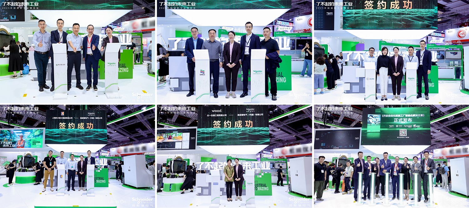 工博会现场,施耐德电气与杭州锦江集团、山东京博控股集团有限公司、深圳艾灵网络有限公司、上海科大重工集团有限公司、众一伍德工程有限公司、广东捷盟智能装备股份有限公司、国霖技术有限公司、山东海科控股有限公司、深圳市海吉科技有限公司、安徽联合智能装备有限责任公司、中鼎智能(无锡)科技股份有限公司等客户及合作伙伴签署合作协议,进一步深化在各行业及项目中的合作布局。
